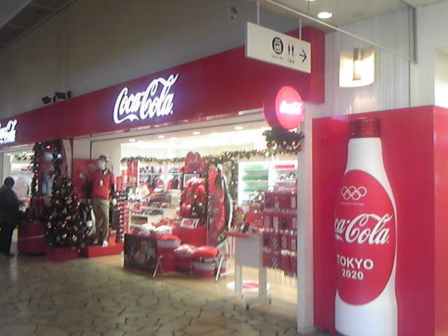 コカ・コーラのロゴやデザインを使った商品がずらり並んでいます。
