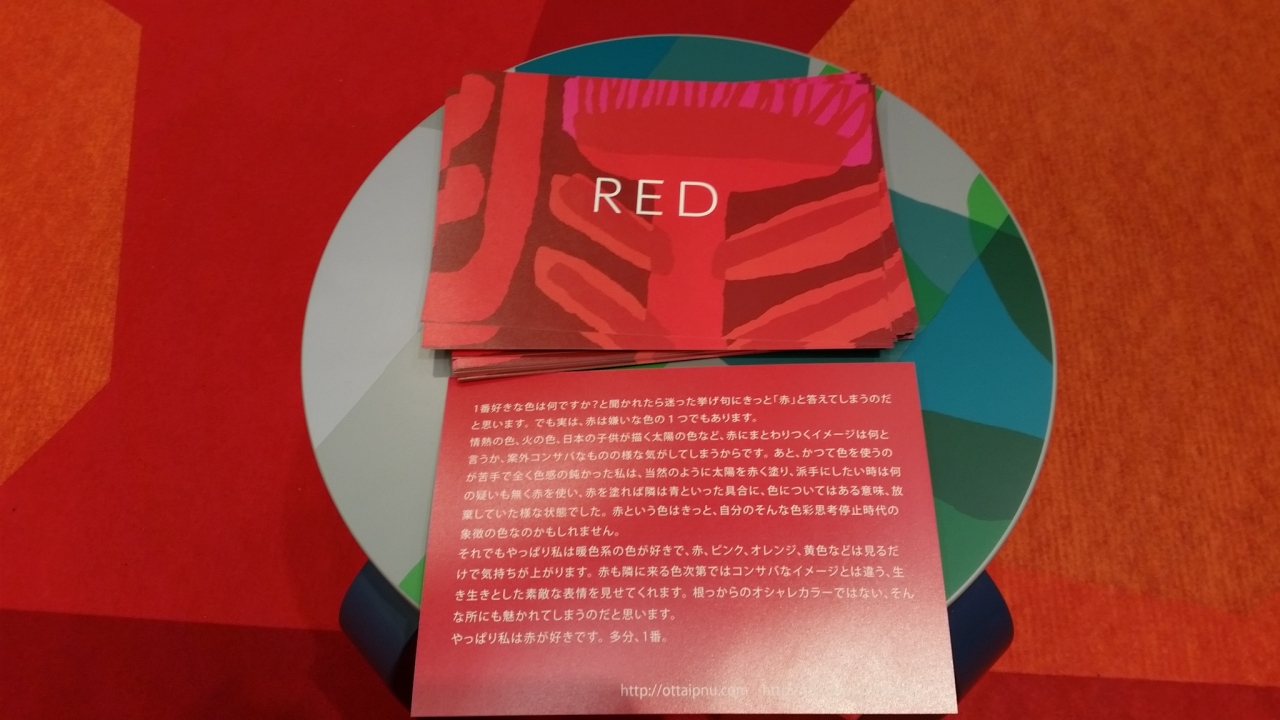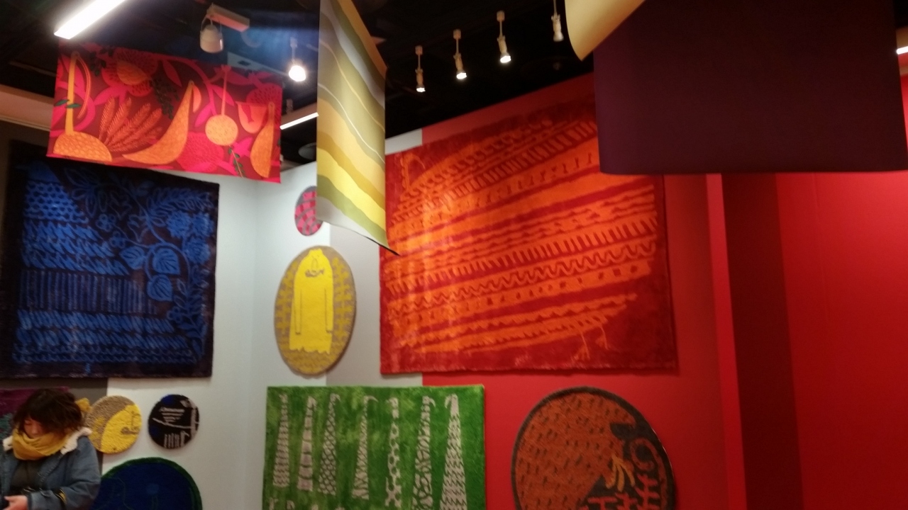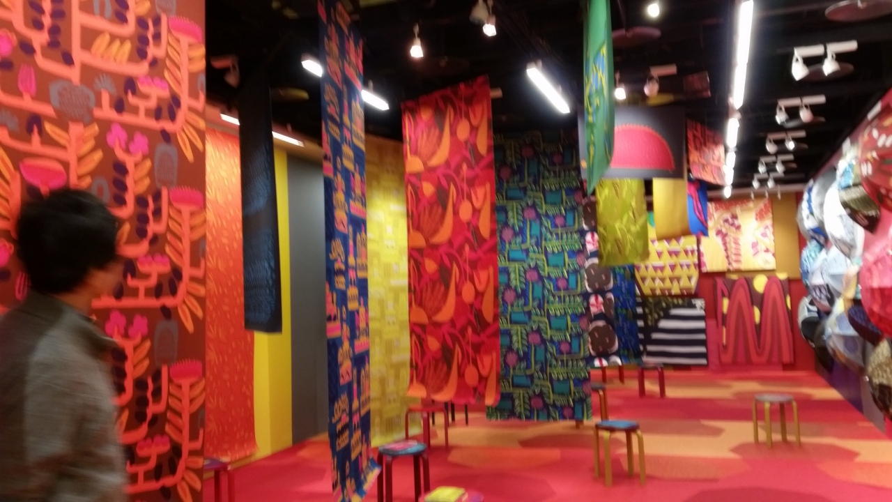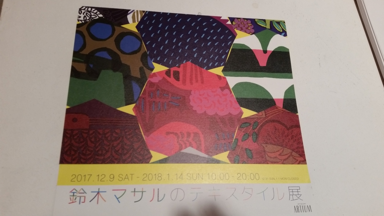 イムズに用事があって行き、ついでに8階で行われている「鈴木マサルのテキスタイル展」を見に行きました。入場料は400円で、会期中何度でも入れます。「目に見えるものすべて色柄」というテーマの通り、とてもカラフルでした。