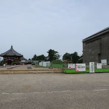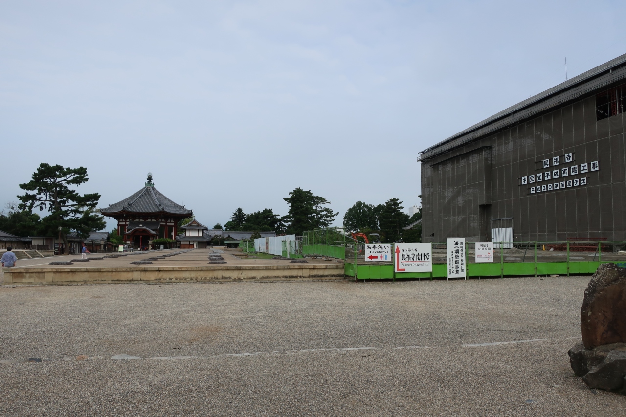 中金堂は興福寺境内のほぼ真ん中に位置する興福寺の中心的な建物ですが、創建1300年を控え現在再建中です。このため境内の多くの場所が立ち入り禁止になっています。また、再建中の中金堂は2018年に落成予定で、訪れたときも未だ足場に幕が張られ中を垣間見ることもできないです。見られるところは回廊、中門の礎石位です。