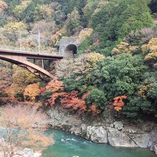 嵯峨野→亀岡だと右側の方が川沿い時間が長いと思う
