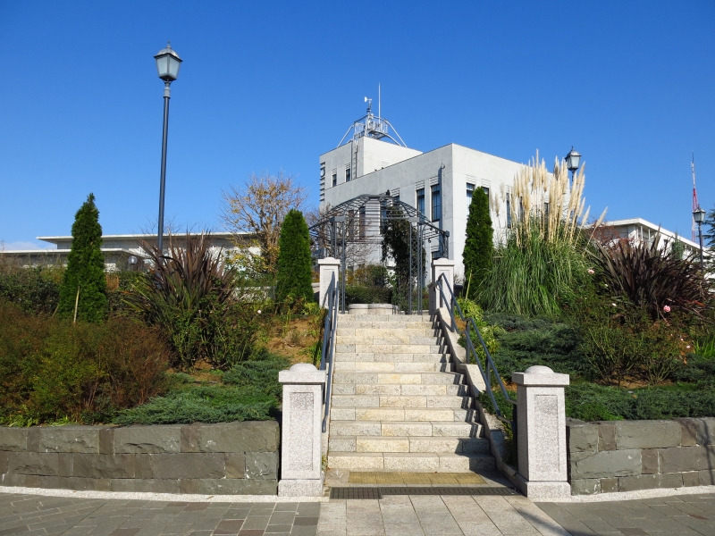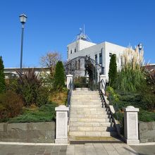 正面の階段の上には古い石造りの建物・・・と思いきや、敷地としては隣の「横浜地方気象台」でした。完全な“借景”ですね(笑)