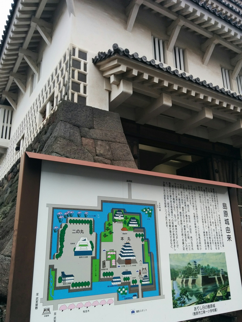 初めて見る島原城は、白壁と黒ぽい瓦とのコントラストがとても綺麗で雄大なお城でした。