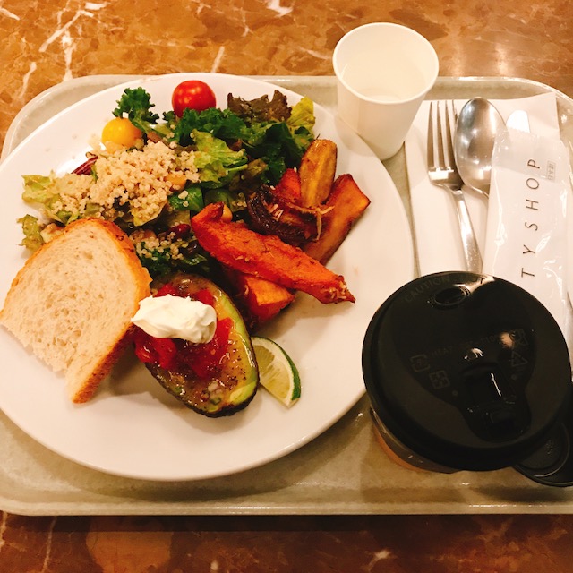 ガラス張りのお店で入り口横にExpress CITY SHOPというコーナーがあり、パック詰めされたサラダやジュースなどが並んでいます。
