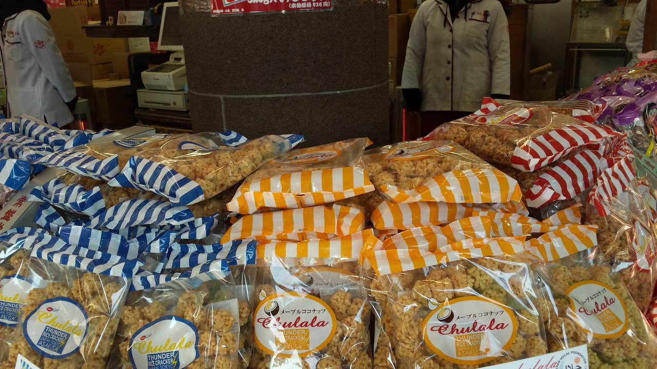 老舗の常盤堂雷門おこしは、幼い時から食べているせいか、さくさくした食感が 懐かしく、今も好きで、浅草に来ると購入します。数種の味があり、試食もでき、味見しながらです。2階は食堂もあり、それほど、混んでいないのでゆっくりできます。