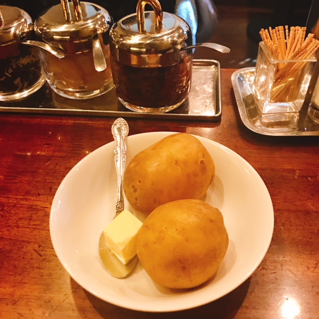 今回はあさりカレー1,400円を注文 ランチタイムの混んでいる時間でしたが比較的すぐにお料理が運ばれました。付け合せは蒸されたじゃがいも2個にバターです。