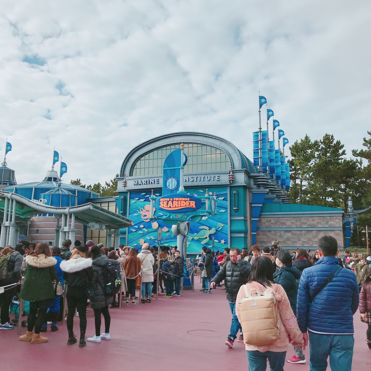 ファストパスをゲットしてこちらによるやってきました。はじめてのアトラクは楽しみですね。ニモたちのいる海の中へ行くツアーです。映像もきれいしシアター系なのでハケやすくて効率がよいですね。ニモかわいいです。