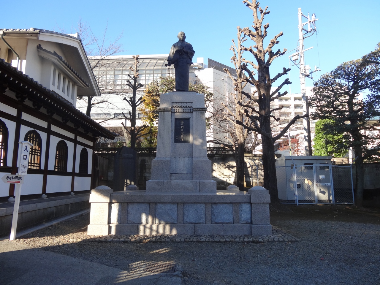 泉岳寺の中門から山門へ向かう途中の右側にあります。大石内蔵助吉雄と言えば、赤穂義士のリーダーとして今でも絶大な人気を誇りますが、こちらの銅像は、威風堂々した佇まいで威厳がありますね。参拝順路に従っていけば自然と見つかると思います。