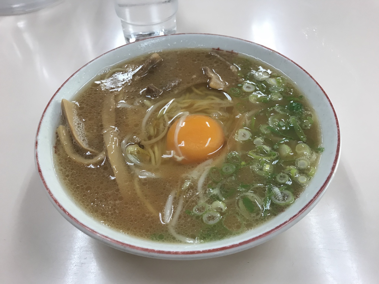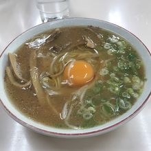 多くの店員でさばいている。中華そば中盛りに生卵を入れてみたが、これも少し濃厚で好みではない。若干生卵で濃い味が中和される印象。チャーシューも薄っぺらい肉で美味しくない。ただしメンマやねぎは味がしっかり出ていて好感の持てる副菜で