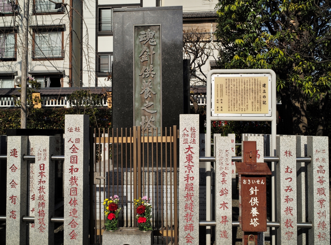 浅草寺本堂の西側に建つ淡島堂の境内に針供養の石碑がありました。