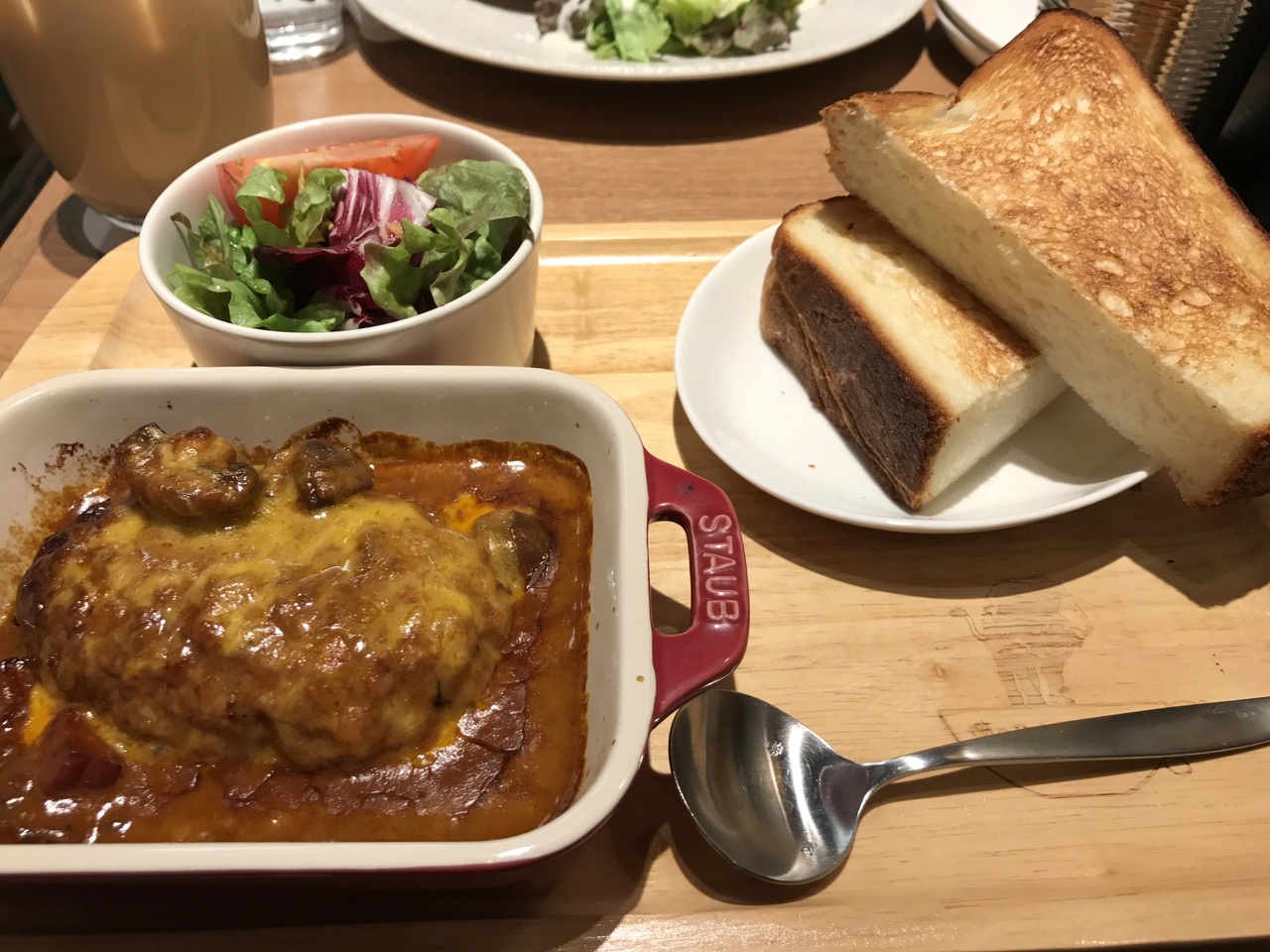 本当は、普通に食パンとバターで食べたかったのですが、煮込みハンバーグのメニューを見てしまったので、今回は煮込みハンバーグとパンにしました( ̄∀ ̄)