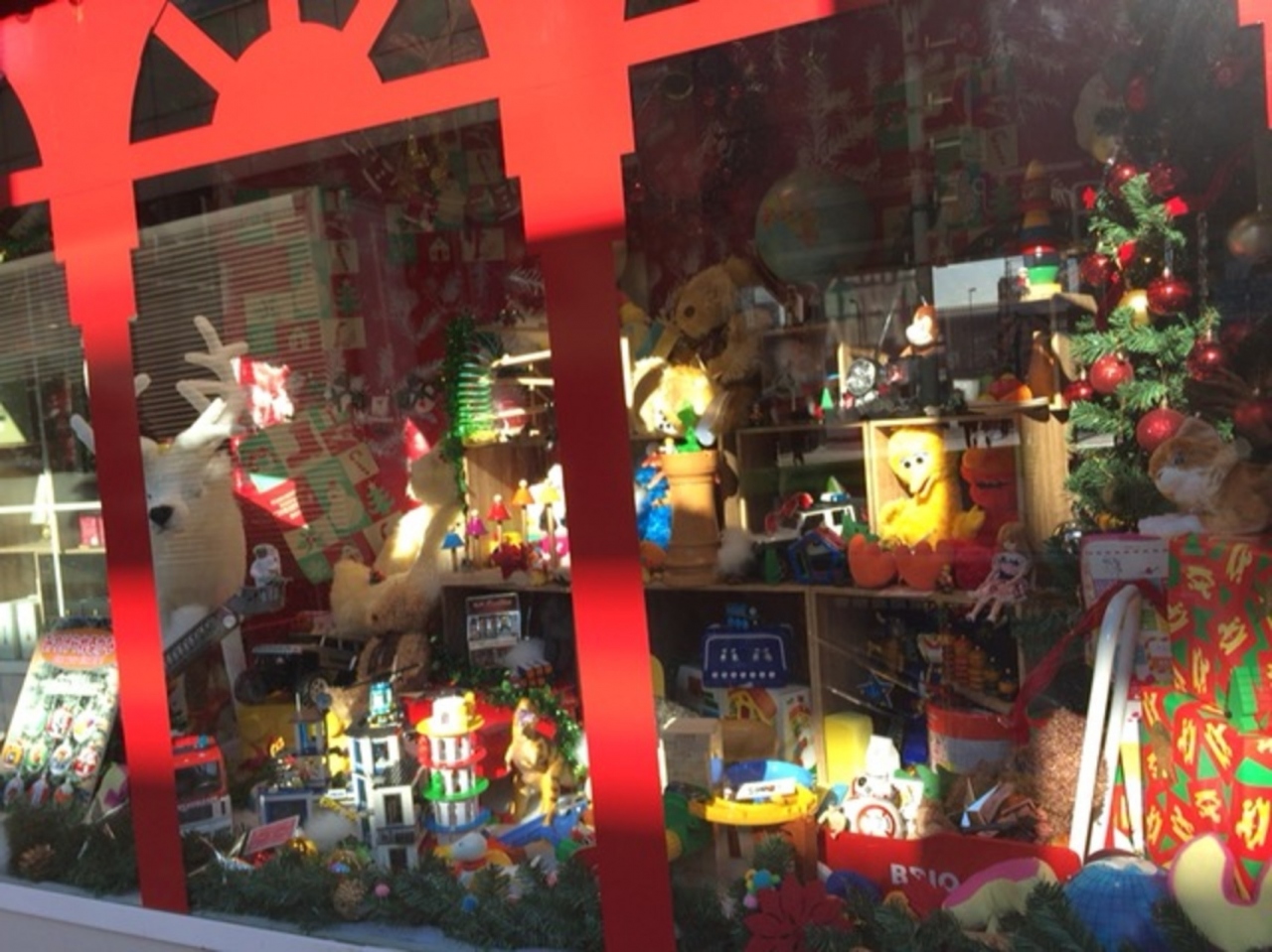 店頭にトナカイの着ぐるみを着たスタッフの方がいらっしゃいました クリスマス気分ですね。オモチャ屋さんと思ってましたが、レストランや、劇場も有りました。24日まで 政治の風刺ネタが面白いザ・ニュースペーパーさんの舞台をやっているようでした。時間が合えば見てみたいです。