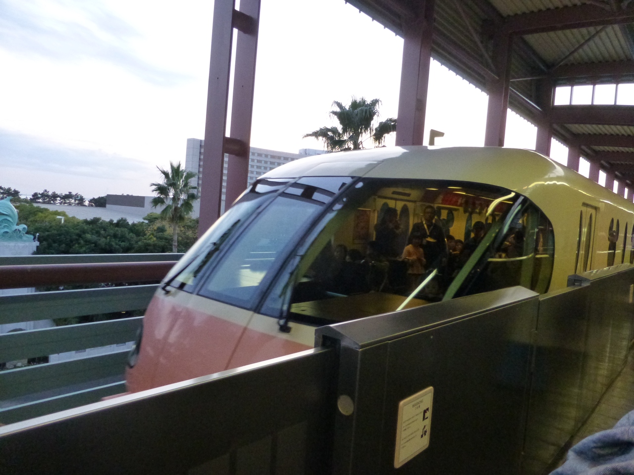 久しぶりでTDRに来て利用しました.以前にオフィシャルホテルのシェラトンに泊まった時は昼間は仕事があったので,このモノレールでJR舞浜駅まで行って都内に通勤(?)しましたが,今回はサンルートプラザ東京からディズニーランドに行くのに,ちょっと時間調整で乗りました.以前に散々乗ったのに忘れていたのですが,これは有料だったのですね.ディズニーリゾートクルーザーが無料なのでその乗りで無料だと思い込んでいました.まあ,TDRも見えるし,椅子も羽田空港のモノレールなどとは違った向きにしつらえてあるし楽しいのでよしとしましょう.