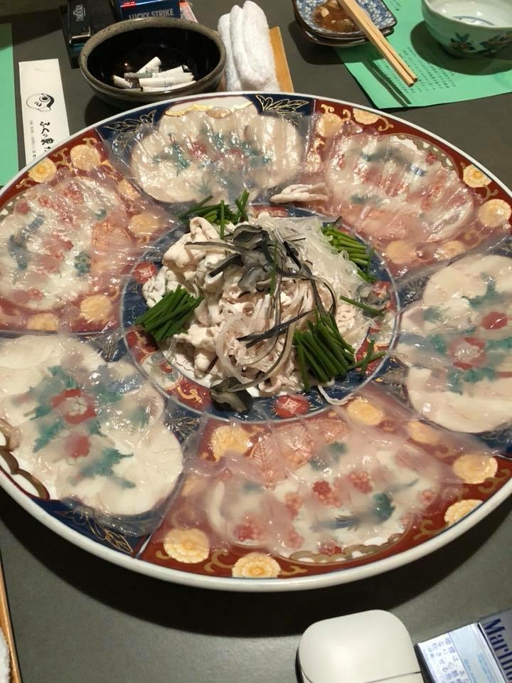 ふぐ刺しは身がコリコリで、てっちりも良い出汁が出ていて最後の雑炊も美味しかったです。