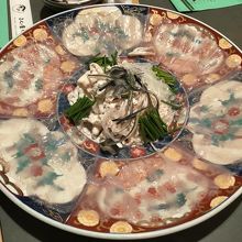 今回は、 活ふぐ刺し・から揚げ・皮湯引き・ てっちりを注文。