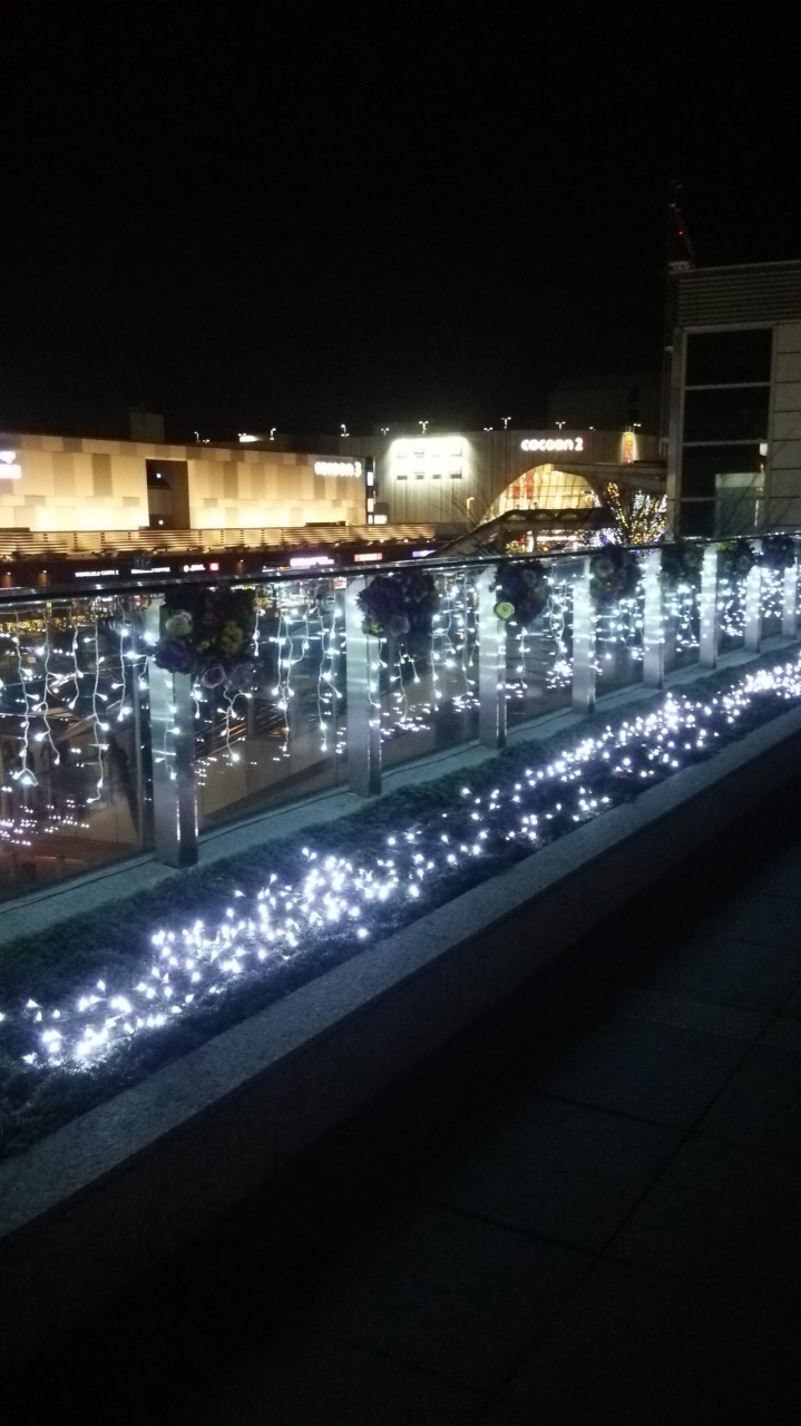 会社の帰り道、少し寄り道をしてさいたま新都心駅で途中下車しました。駅を降りてコクーンに向かう陸橋。ライトアップされていてとても綺麗でした。中に入ってしまうと気がつきませんが駅から見るコクーンはとてもステキです。