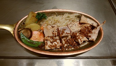 鉄板で焼いた素材をテーブルの保温プレート上に並べてくれるので温かい状態でゆっくり味わうことができまます。となるはずなのですが・・・