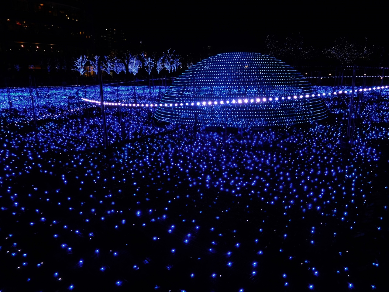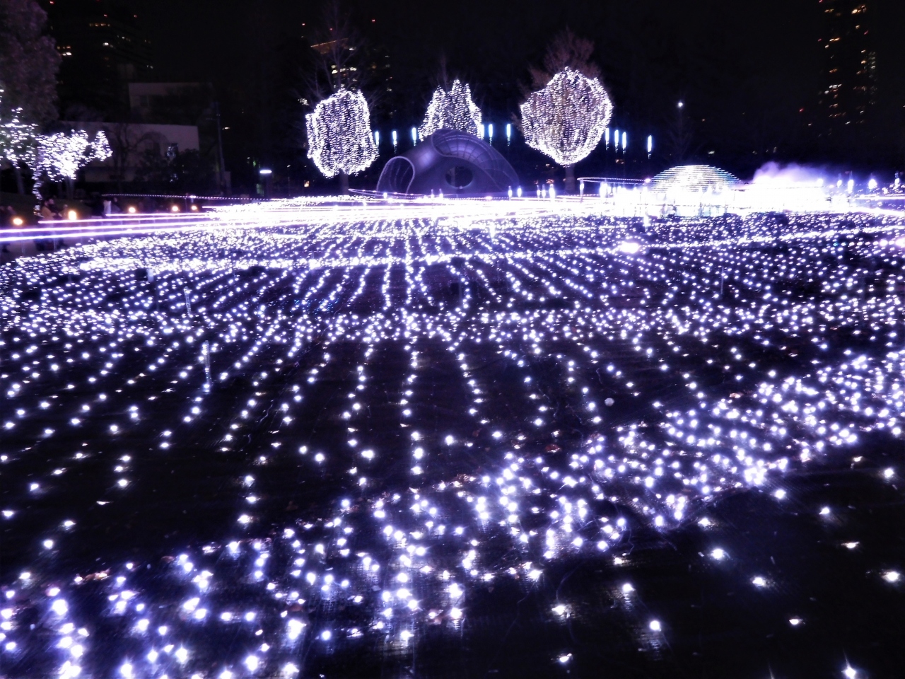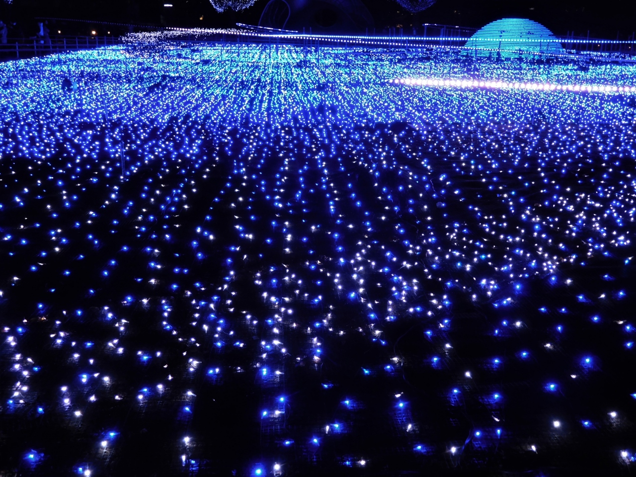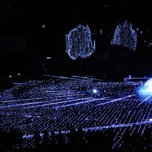 じっと見ていると、一面の青いライトが城に代わったりでも白かったです。