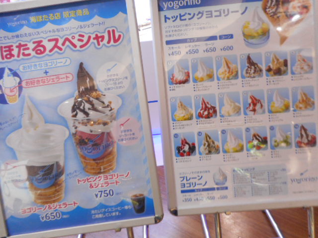 海ほたるの4階のショップスペース奥にあるお店ですので、気軽に入れていいです。海ほたるの限定メニューもあって、ヨゴリーノ(ヨーグルト味のソフトクリーム)と、ジェラートアイスが両方楽しめてよかったです。値段はまあまあするけど(700円くらい)。他にも冬限定のメニューとかもありましたよ!