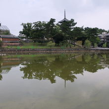 興福寺の南側にある一周3分程の池です。猿沢池からは、水面に興福寺の五重塔が映り込む奈良の観光写真でも良く使われる風景を見ることができます。池の周囲にはベンチが置かれ美しい眺めを堪能できます。