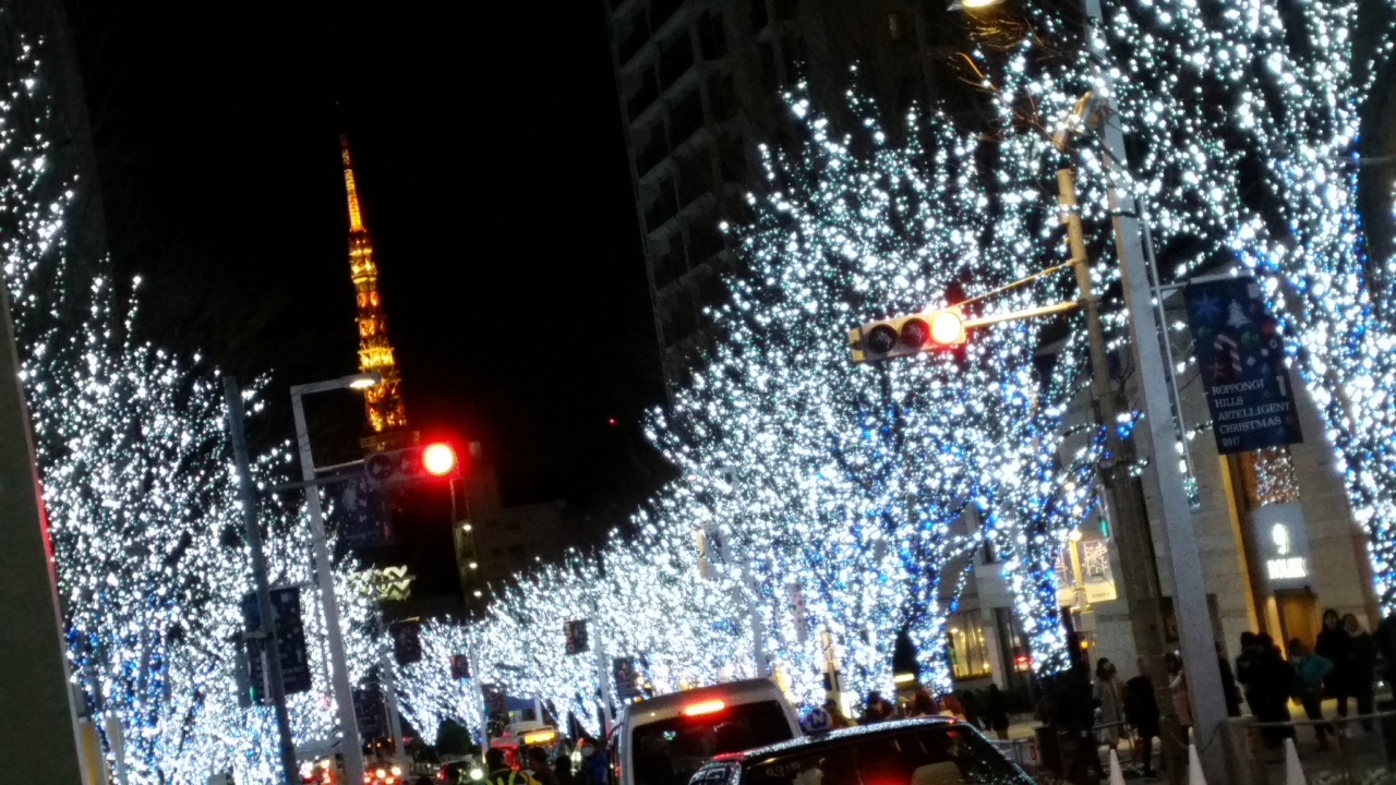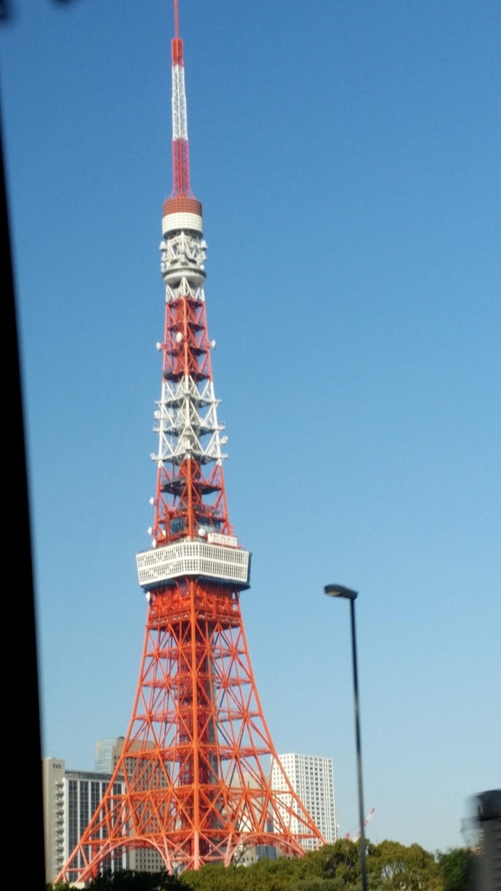 日帰りバスツアーで、昼間は前を通り、夜はイルミネーションの背景として眺めました。昼は青空に紅白が映えて綺麗。夜は白いイルミネーションにオレンジ色が浮かび上がり綺麗。添乗員さんによると1日の電気代は36000円だそうです。