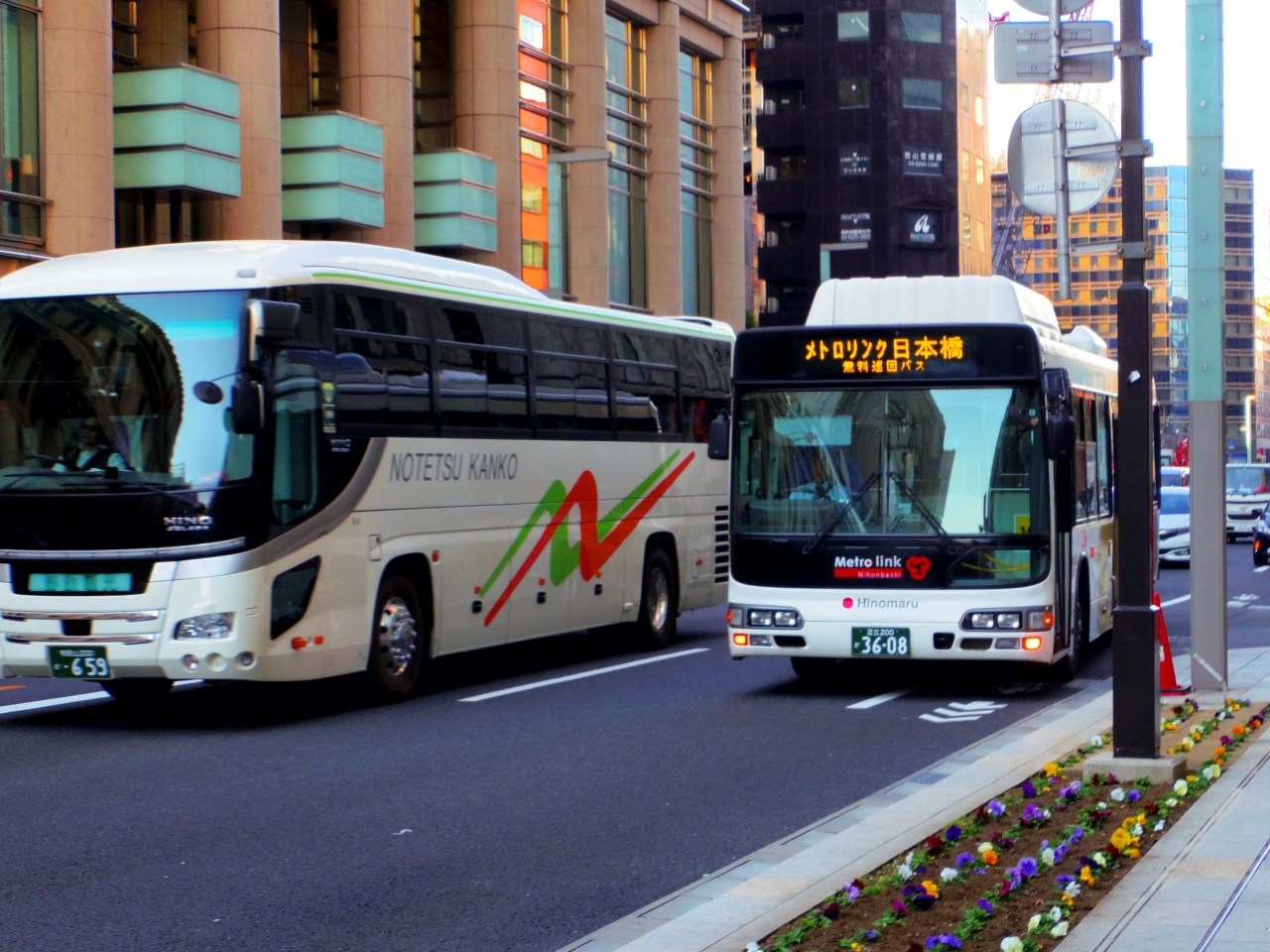 東京駅八重洲口から日本橋界隈をぐるっとめぐっているので、三越や高島屋などで買物をする人たちで混雑していました。