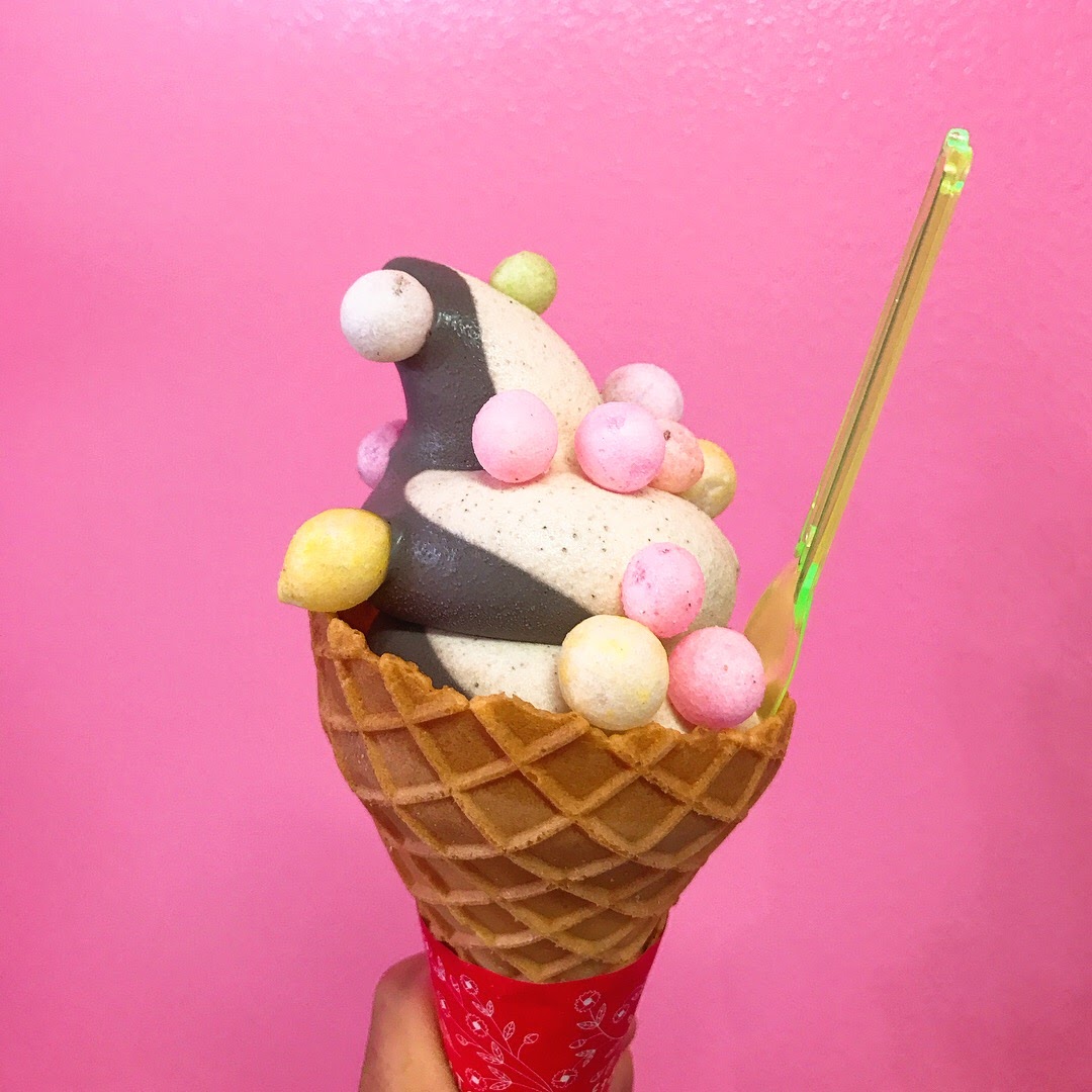 ごまアイス同様にごまソフトはとても美味しい。おいりのトッピングは100円。