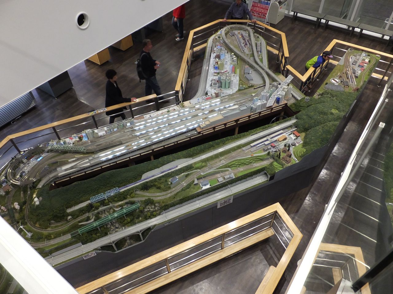ありとあらゆる同社の製品が販売、また、ジオラマが設置。びゅんびゅん模型が走り回ってます。