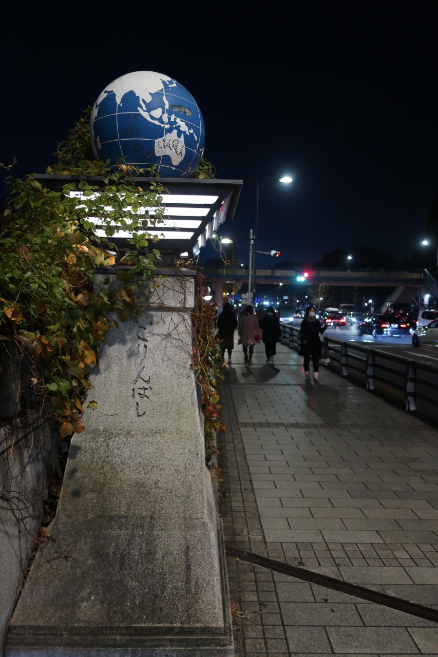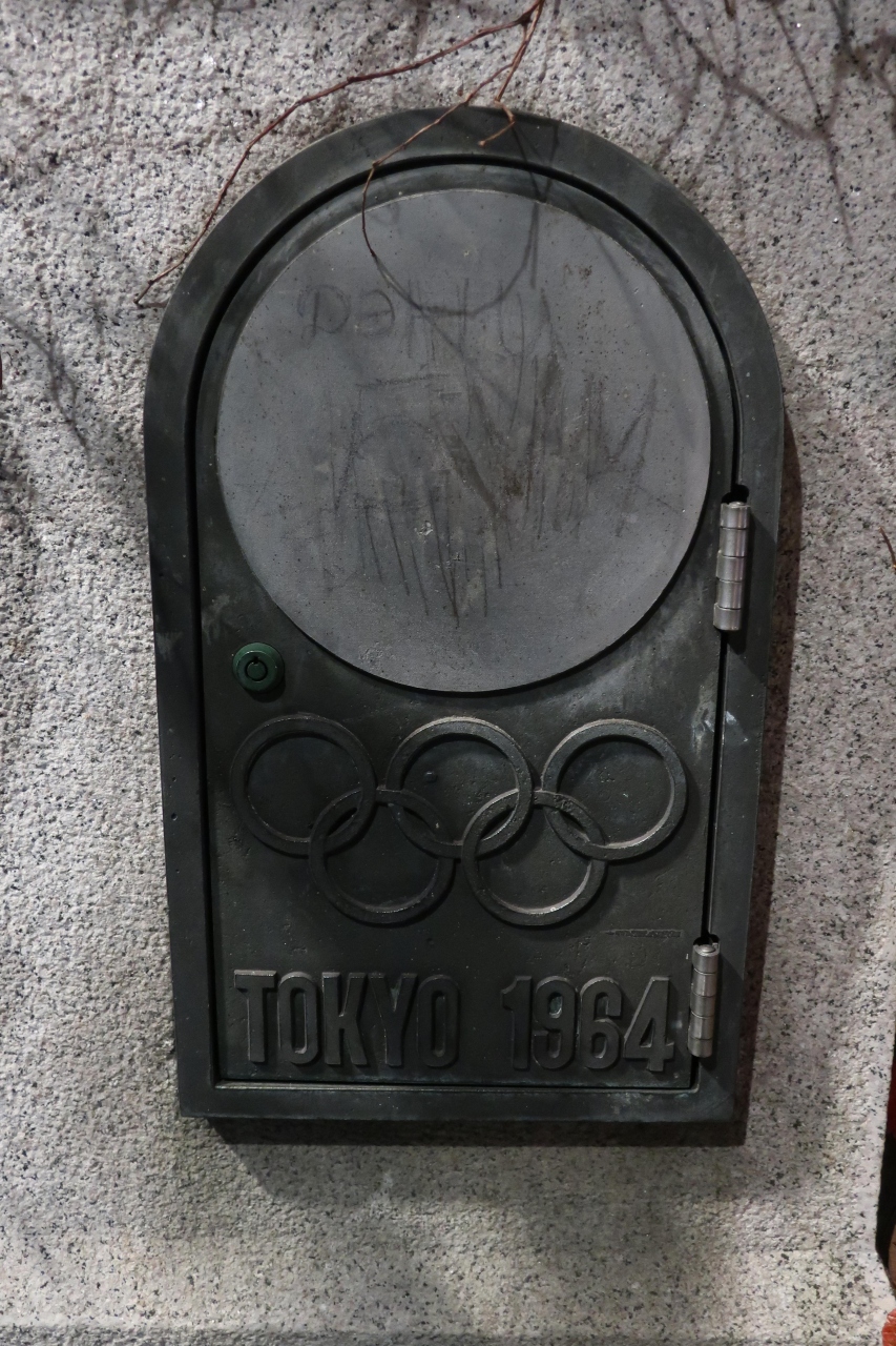 橋には当時の東京オリンピックのシンボルや地球儀が橋柱に施され、欄干には各競技のレリーフが飾られています。時代を感じさせる橋です。