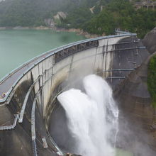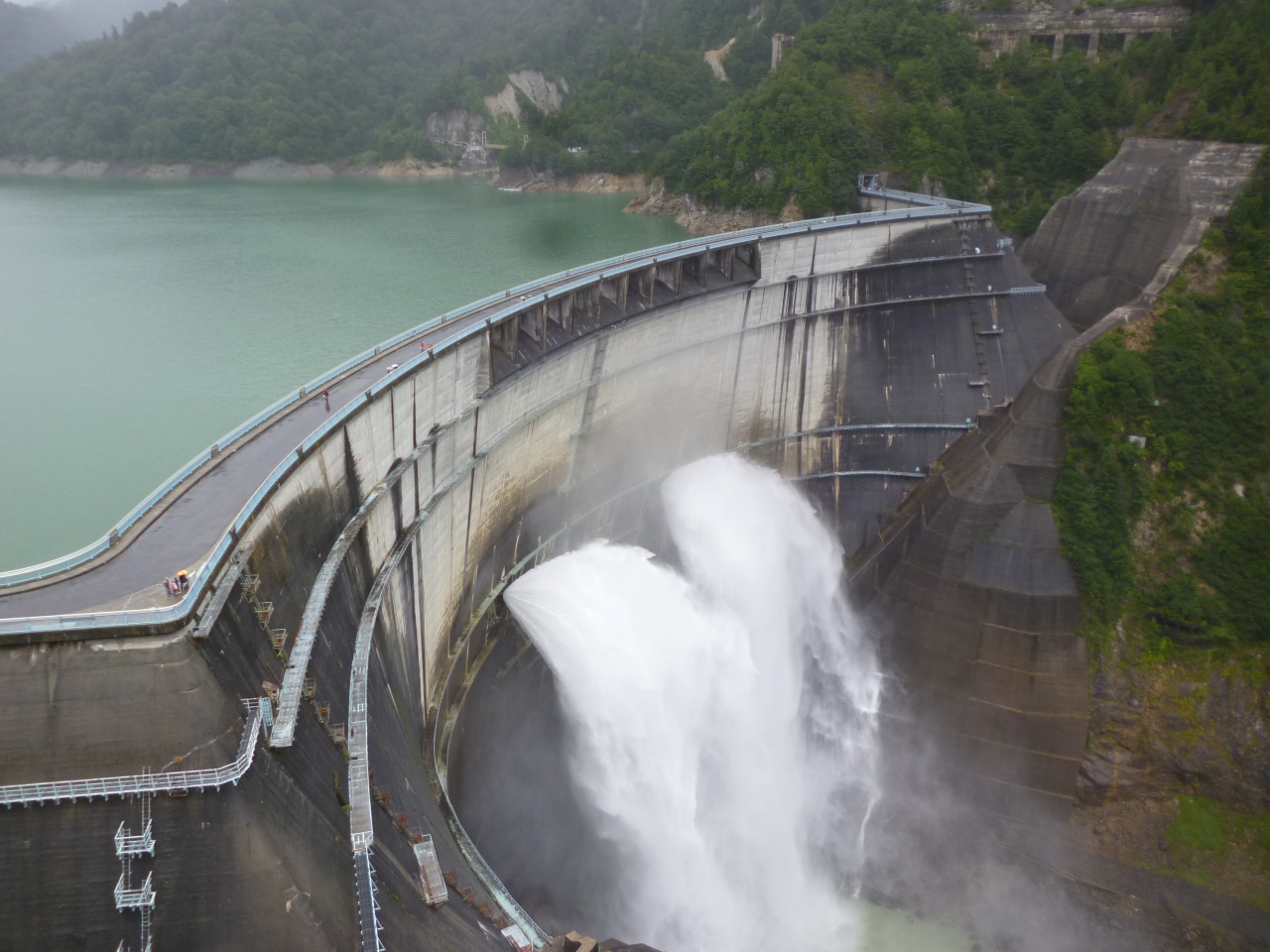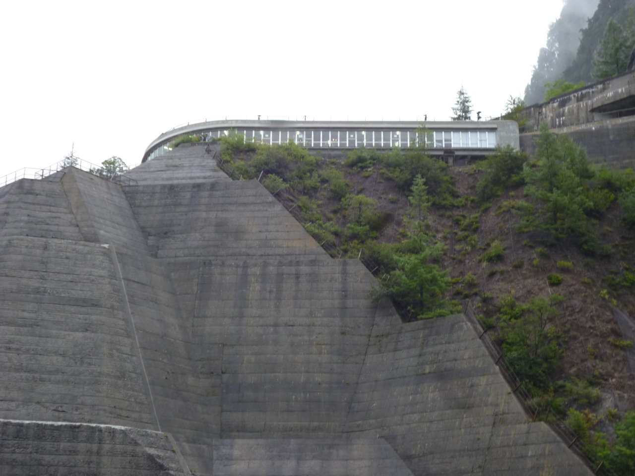 黒部ケーブルカーを降りていよいよ黒部ダムへ。歩くこと15分、黒部ダムに着きました。ここまでけっこう歩いたのに、ここからさらに展望台に上がらなくてはなりません。展望台までは、かなりありますが、ここに来るのがお目当て、休み休み登りました。途中途中の景色も違うので、ゆっくり登るのがいいですね。日本最高峰の技術で完成した黒部ダムを高いところから見ながら、日本の技術に感心しました。