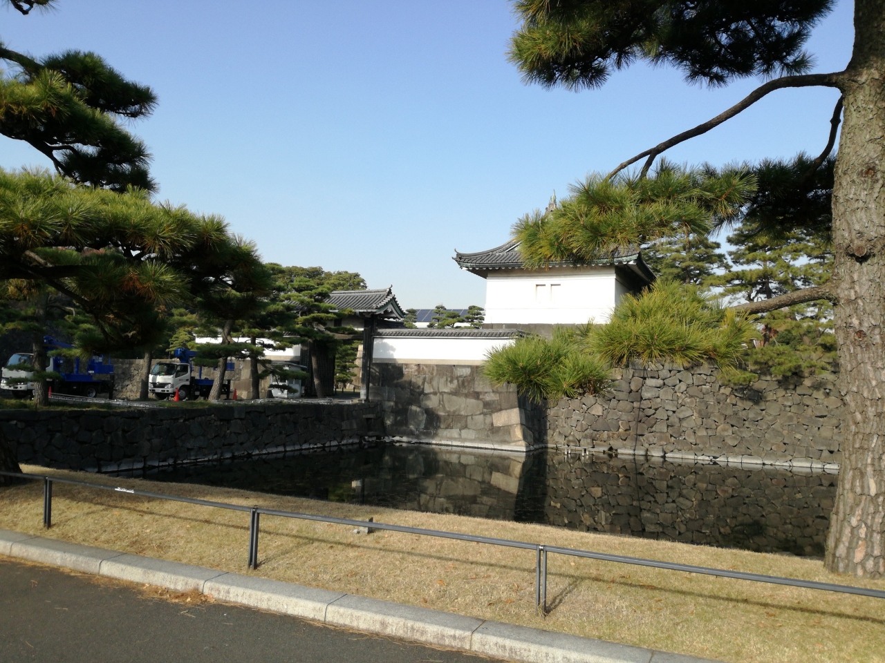 東京駅から徒歩約15分でつきましたが、千代田線二重橋前駅か三田線大手町駅からだと徒歩約10分かと思います。橋を渡ったところに桔梗門(別名:内桜田門)があります。桔梗の由来は太田道灌の家紋だそうです。ここ桔梗門は一般の方の皇居参観にスタート地点になっています。