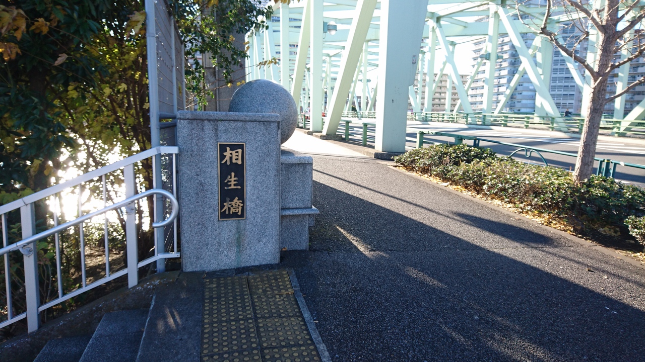 隅田川から分かれる豊洲運河に架かる相生橋に行きました。この橋は始め長短二つの端で構成されていたことから「相生の松」にちなんで相生橋と名づけられたそうです。橋からは東京海洋大学の明治丸が見え、きっと素晴らしい夜景のスポットになります。