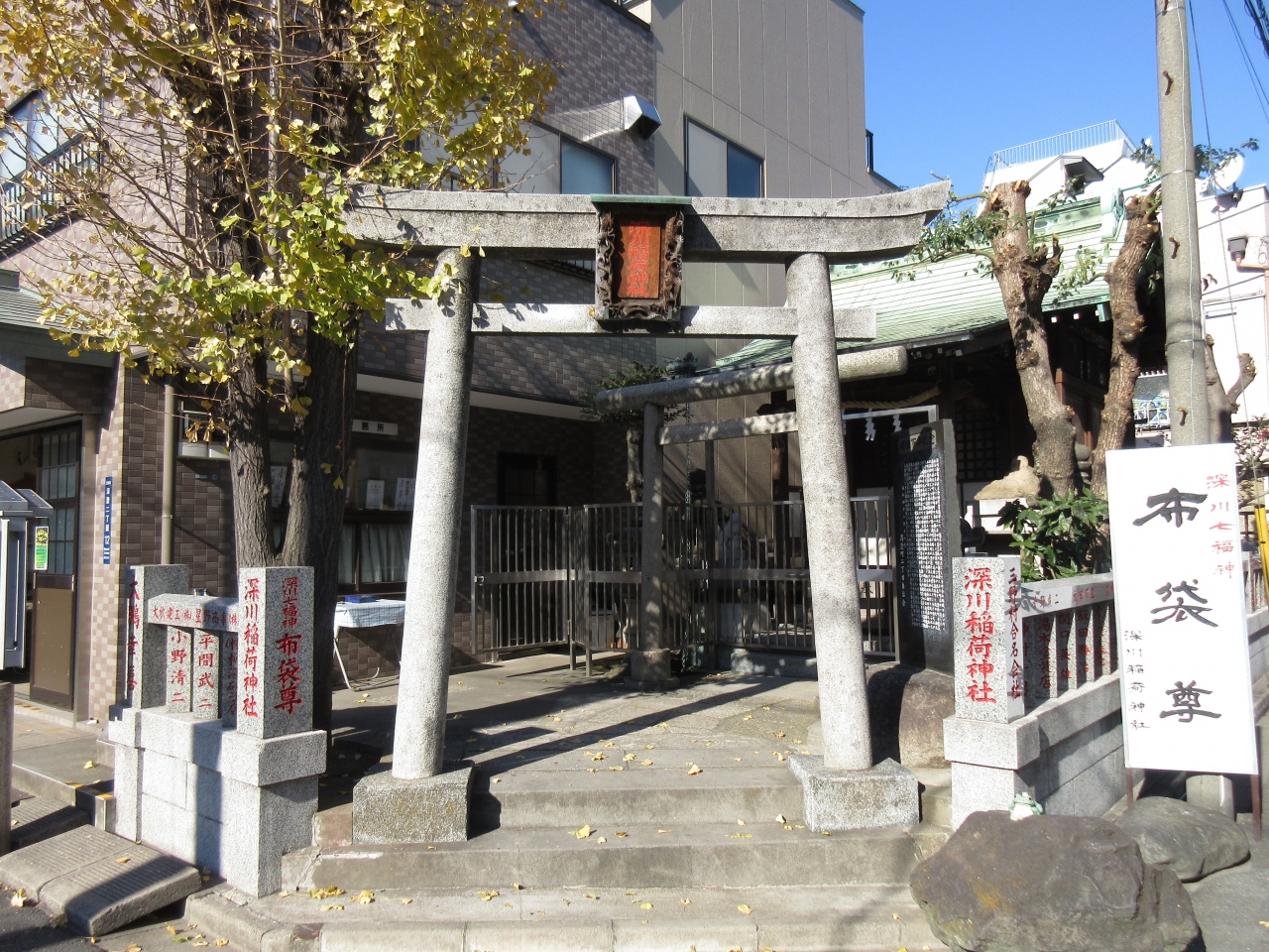 横綱通りの角地にある稲荷神社です。1630年創建で、深川七福神の布袋尊を祀っています。社殿の扉が閉まっていて布袋像を見ることはできません。説明板に布袋像の写真が載っています。大きなイチョウと鳥居前の石の上にのっている親子ガエルが印象的です。散策中に深川七福神のパンフレットを2種類手に入れましたが、どちらもアクセスしか載っていなかったです。詳しい説明はありませんでした。深川七福神巡りをされる方におすすめです。