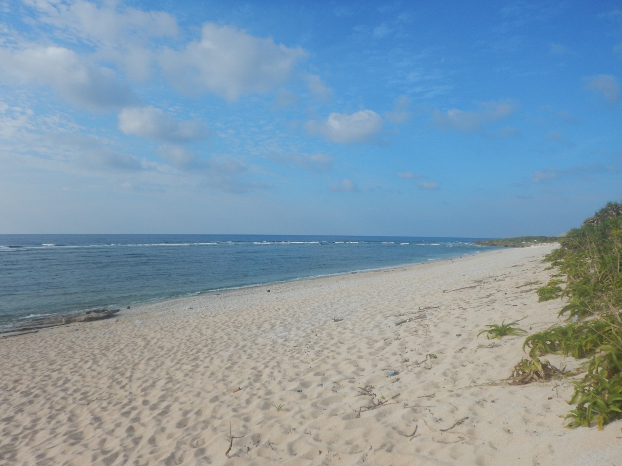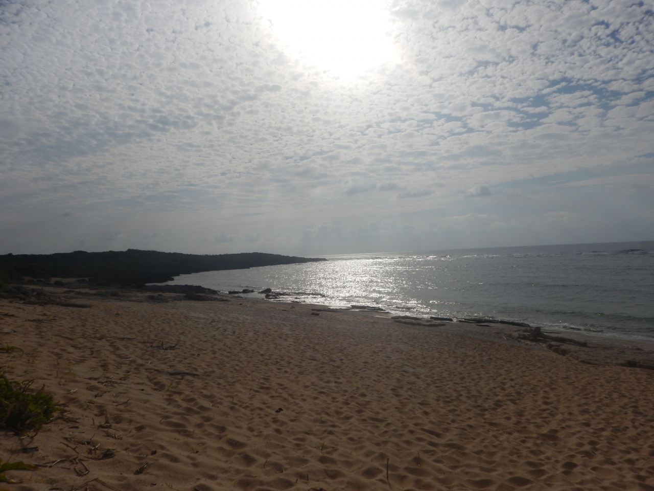 宿で自転車を借りて島を回る。宿から一気に南下するとぺムチ浜に出た。私以外には観光客はいない。見た限りでは砂浜が広がっている。向かいの海は太平洋だ。海はきれいだが、流れが速いので遊泳は禁止されているそうだ。