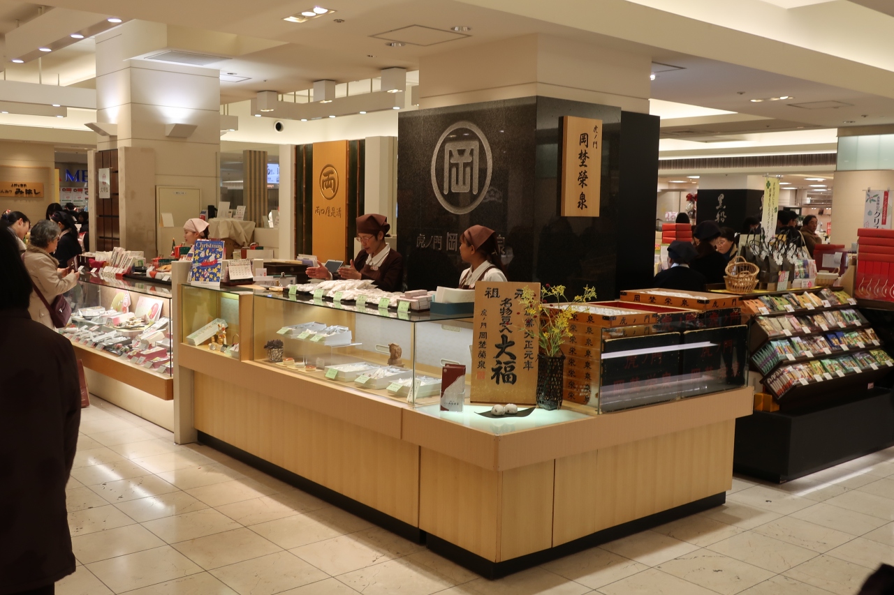 玉川島屋のデパ地下にある創業145年の和菓子の老舗です。この店の名物は何と言っても豆大福。玉川島屋に4時過ぎに行くと大抵の売り切れでこれまで買えたことがありません。今回クリスマスイブの日の4時過ぎに行くと結構豆大福が残っており、初めて買うことが出来ました。特別な日には沢山入荷するようです。
