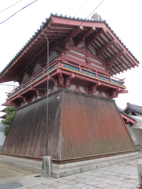 私が四天王寺さんで大好きな建物です。純和風ではありません。黒い屋根に赤い骨組み、そして緑の欄干。何よりも建物の高さの半分を占める床部分がこの建物の特徴です。おそらくここまで高床式の建物ってこの太鼓楼だけではないでしょうか。