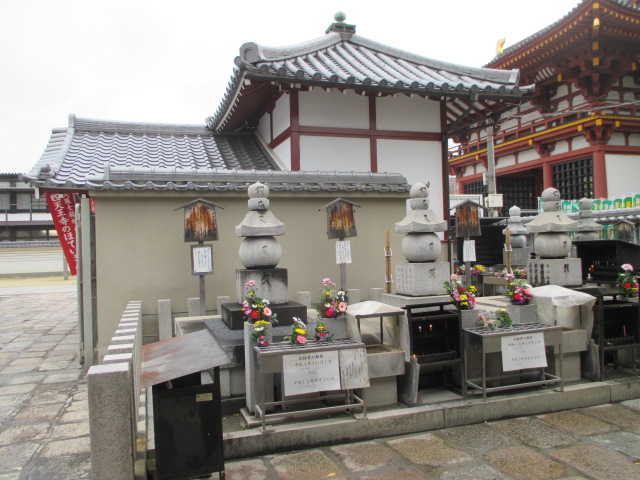 布袋の上に”乳”という文字が付いているので、子供に関係のある供養堂だと見受けました。そのせいか、お墓が可愛く、直方体の台座の上に丸石がのっていて五重構造になっています。これを見て、羽曳野市の西琳寺にある有名な五輪塔に似ているなと思いました。