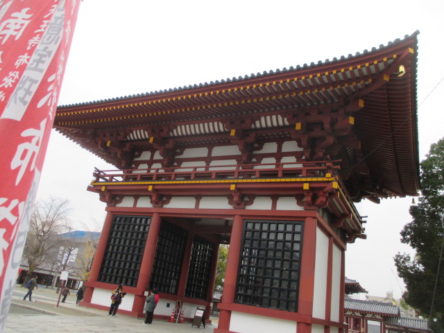 広場のど真ん中にあまりにも堂々と建っているので、これが門だと認識するのに時間を要しました。純和風ではありませんが、赤の骨組みの素敵です。それに壁の大部分がガラス張りになっていて、その表面の黒い枠組みも色の対比のおもしろさを演出しています。