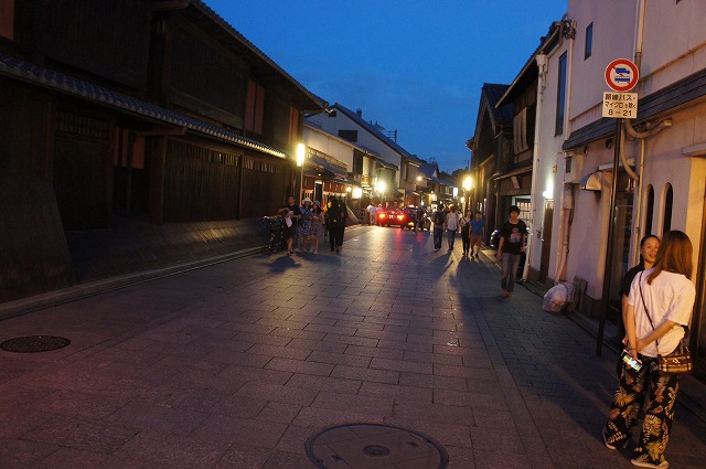 どこに行っても京都らしいしっとりした光景は見られますが、中でも花見小路はとくに美しい町並みです。正確には三条通から建仁寺までの南北1キロということですが、やっぱり四条通から南側の美しさは別格です。電線地中化ですっきりした空間に石畳。それも、現代風でとても歩きやすいのです。道路両側には老舗風の料理屋さん、交差する小さな道路に面してお茶屋さんも見えます。一見さんには無縁だけど。ホコ天と思っていたら、夜、結構車が通るのにはびっくりしましたけどね。狭い京都のこと、車両通行停止とはいかなかったのかな。先日、歩いていたら、もう20年近く昔、京都に出張で来て、京都らしい雰囲気の店がわからず、すき焼きを食べた店が残っていて、うれしくなりました。またいつかそんな機会があればいいけどなあ。それと外人さんの多いこと。やっぱインスタ映えでしょうかねえ。