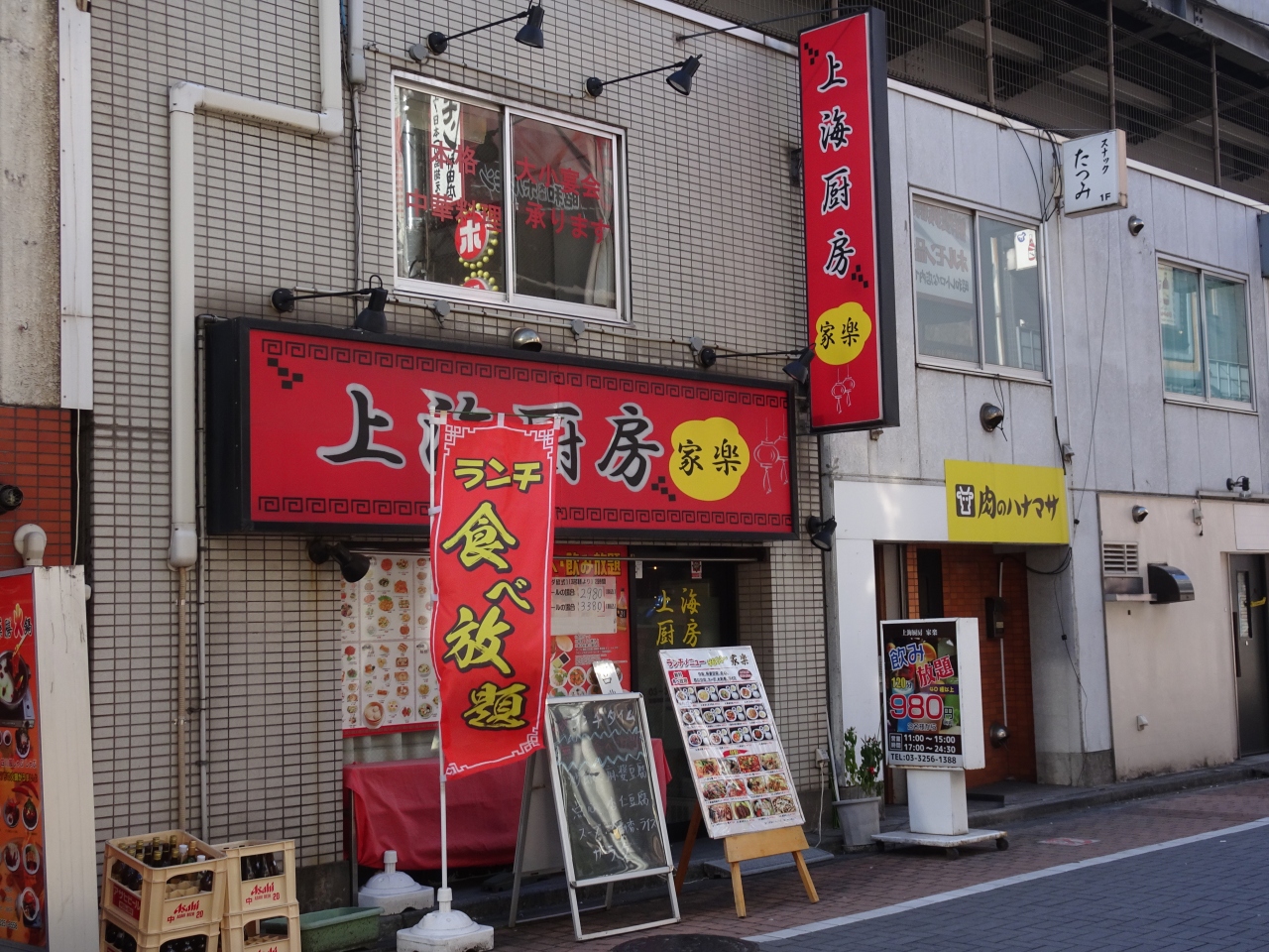 昼から食べ放題が楽しめる中華料理店。神田のガード下にあります。ランチの定食は600円から750円ほどですが、なんと食べ放題の副菜には、チャーハン、麻婆豆腐、から揚げ、サラダ、餃子、杏仁豆腐などが並んでいました。これはつい食べ過ぎてしまいますね。サラリーマンには嬉しいお店です。てか、お店やっていけるのかな。