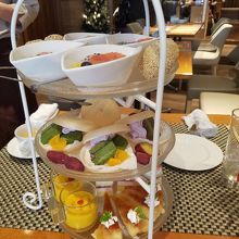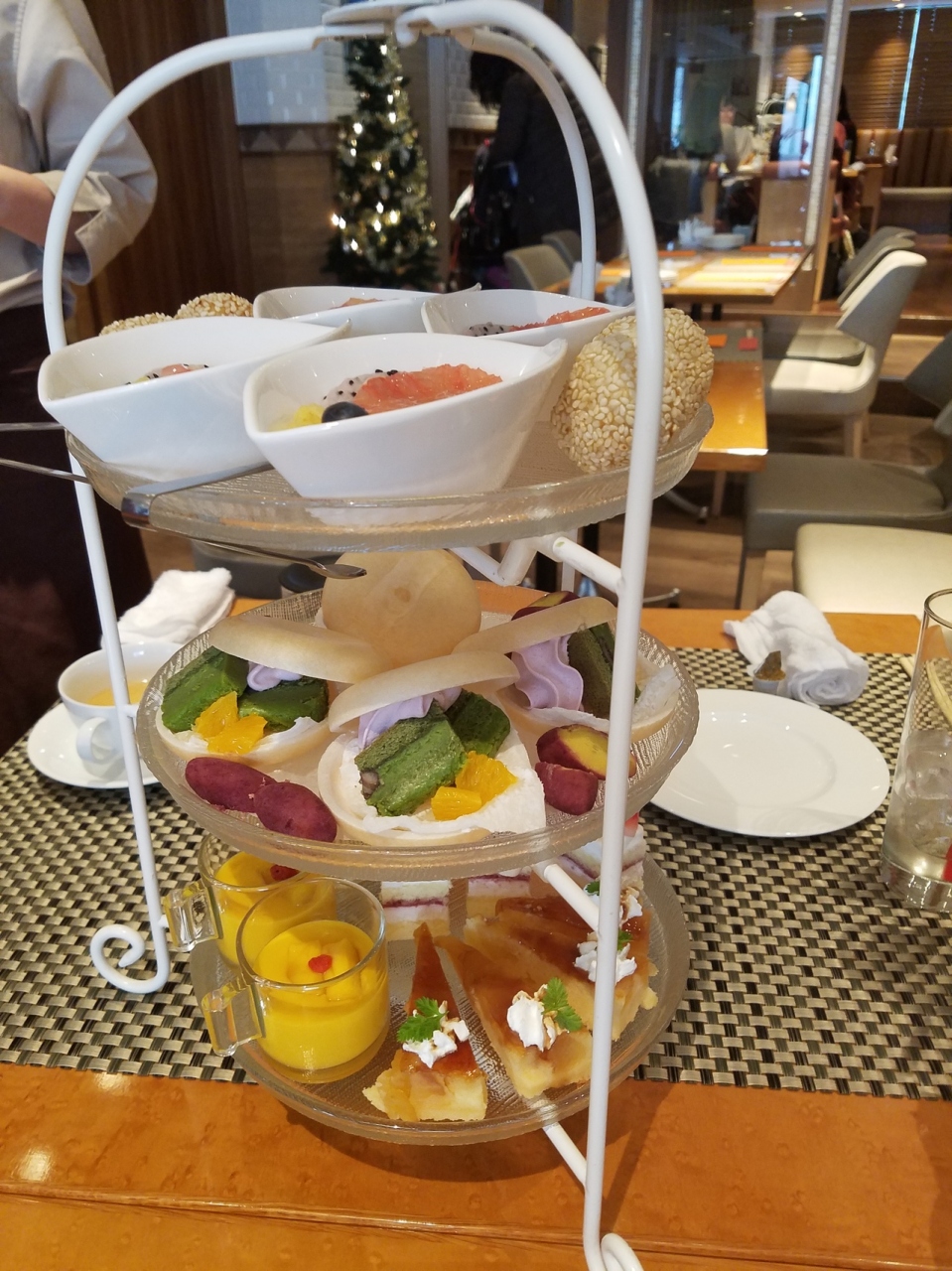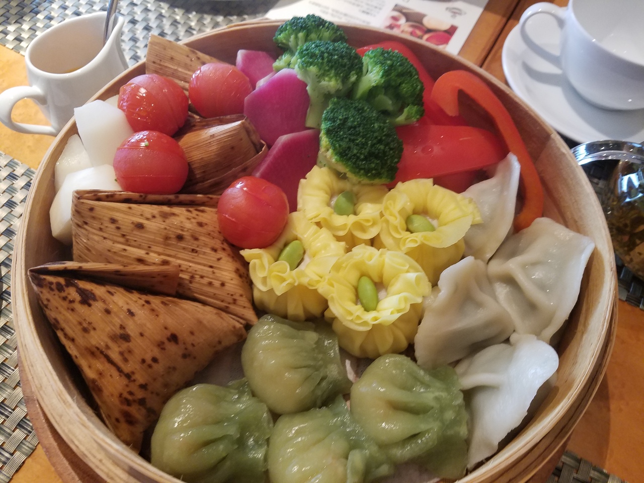 飲茶付きのハイティーをいただきました。4種類の飲茶に蒸した野菜、そしてスイーツのセット。どれも美味しかったです。飲み物は飲み放題。午後のひととき、のんびり過ごすことができるお店でした。