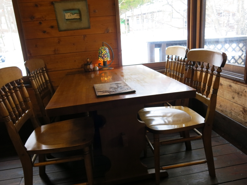 この通りは冬季休業の店が多い中、数少ない営業店でもあり、ログハウス風の店内は落ち着いた雰囲気で、ゆったりとコーヒーが飲めます。