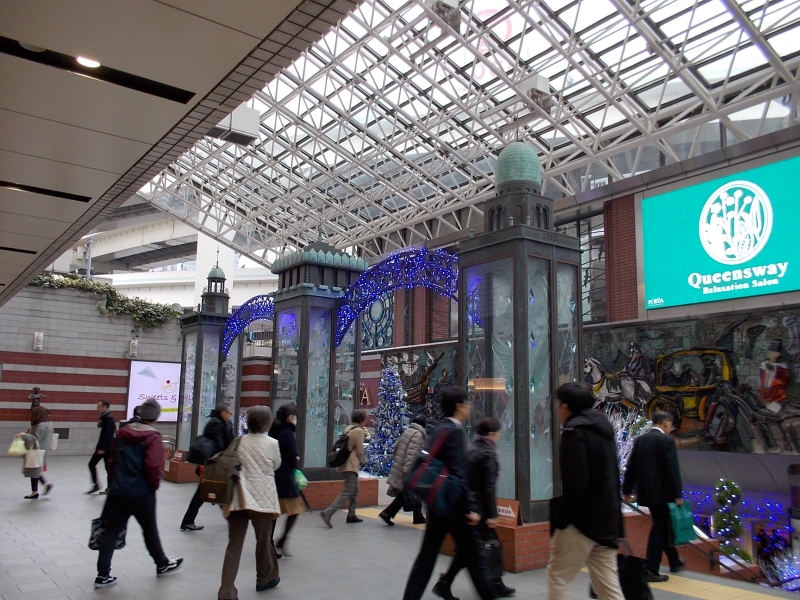 横浜駅から東口地下街ポルタに向かうエスカレーターの入口。