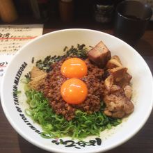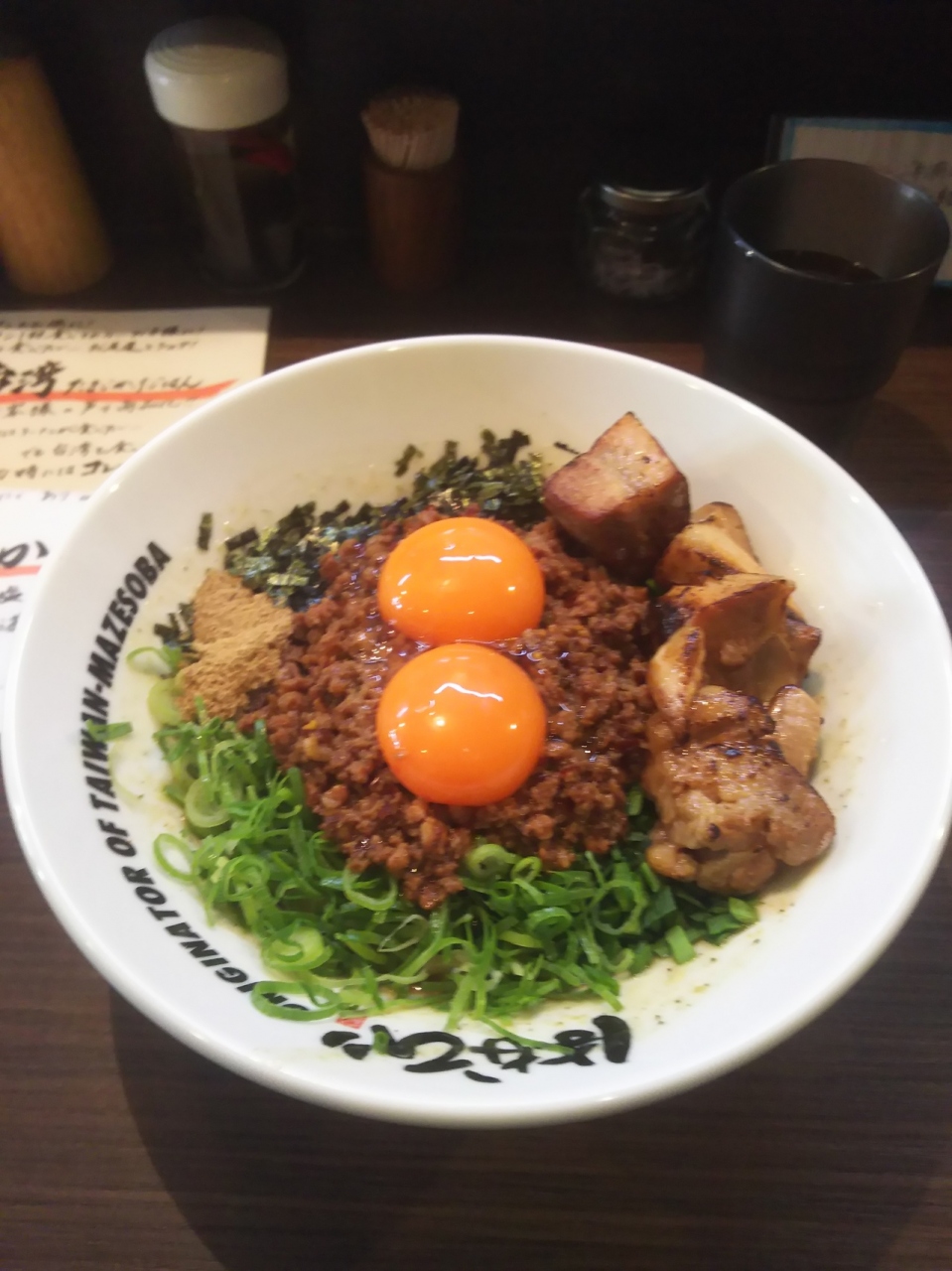 麺屋はなび本店でランチしました。30分くらい前から並びましたが、この日は並ばなくてもすぐ入れるくらいしかお客さん来てませんでした。ど肉のまぜそばを注文しましたが、想像より肉がかなり少なかったです。あと、卵黄が付いてる商品の説明書が分かりにくく、追加で注文してしまい卵黄2つになってしまいました。味は美味しかったです。