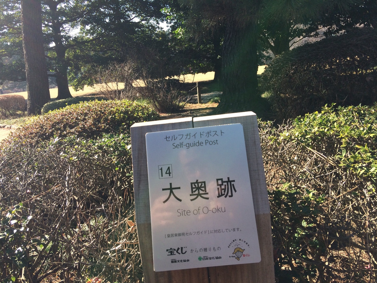 皇居東御苑の中にあり、それを示す案内板がありました。本丸御殿から御鈴廊下でつながっていたのがこの大奥で、映画やドラマなどで取り上げられ有名ですよね。いまでは当時をしのぶような建物もなく、フユザクラが寒風吹く中にさみしそうに咲いているだけでした。