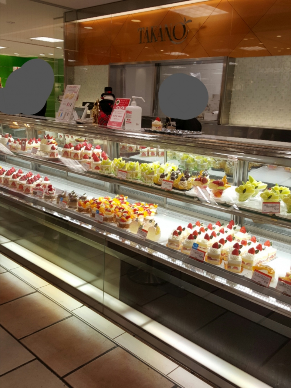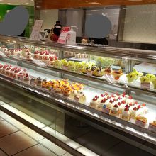 ガラスケースにはフルーツたっぷりのケーキやタルトが並んでいて迷います。