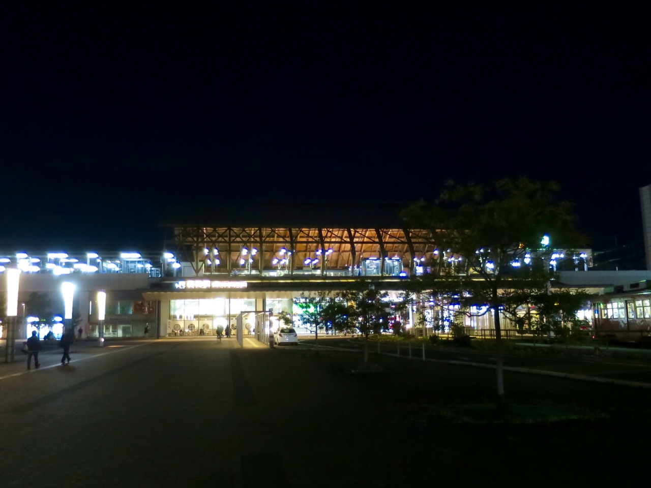 JR四国の高知駅が高架化された際に整備された駅前の広場です。昼間こそ高知出身の歴史上の人物たちの像が立っていて観光地らしい趣きがありますが、日が暮れてしまうと照明も少なく真っ暗な空間となってしまいます。