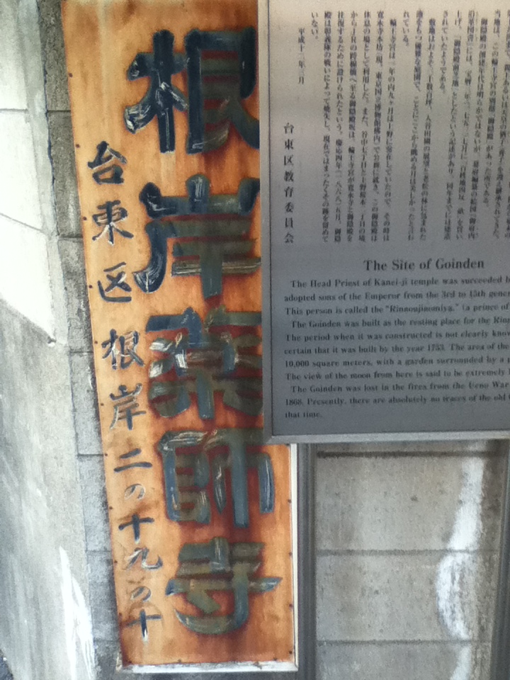 鶯谷駅北西の細い路地沿いにある天台宗系のお寺。路地横に低い鉄柱の山門があり、奥に入っていくと木造の本堂がひっそりと立っている。他に参拝者はいなく静かであった。お勧めの点は、この場所には輪王寺宮一品法親王(寛文から正徳年代)の別邸「御隠殿」があった処であったこと、それ以降に創建されて以来多くの人々から敬拝されていること、参拝すれば願い事が叶うかもしれないこと、境内は狭く静かであること、周辺には根岸三平堂や子規庵があり併せて訪問するのもいいかもしれないこと、駅から徒歩で行けることである。