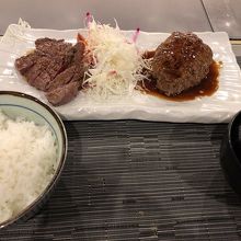 今回は十勝牛ステーキとハンバーグのセットを注文。