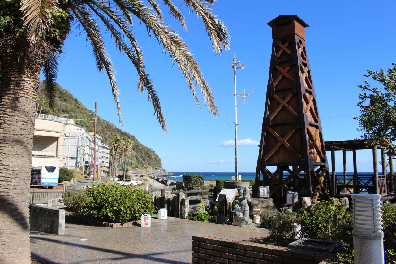 駅から坂道を下っていった先にある熱川温泉の海沿いにある公園。ベンチもあり、無料の足湯もあり、トイレもあります。海辺なので、眺めのよく平和なひと時を過ごせる感じです。散策の休憩にもちょうどよいです。