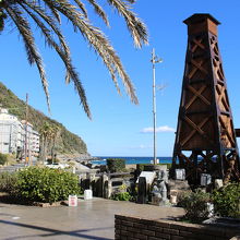 無料の足湯、海も間近に見えて気持ちいい。